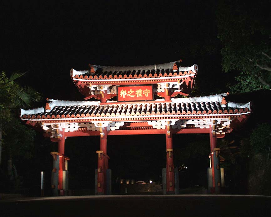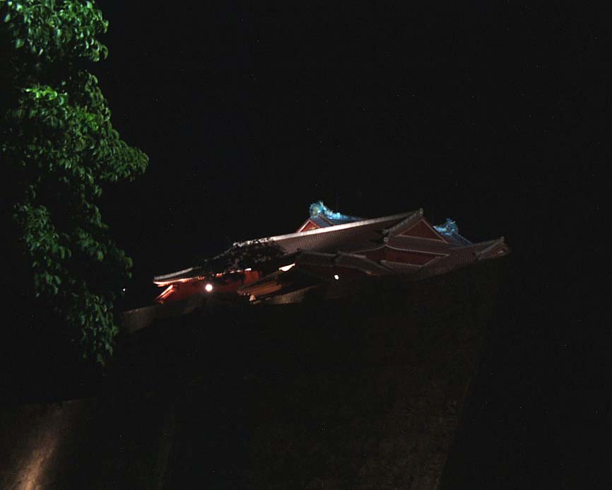 夜の暗闇に 光輝く首里城